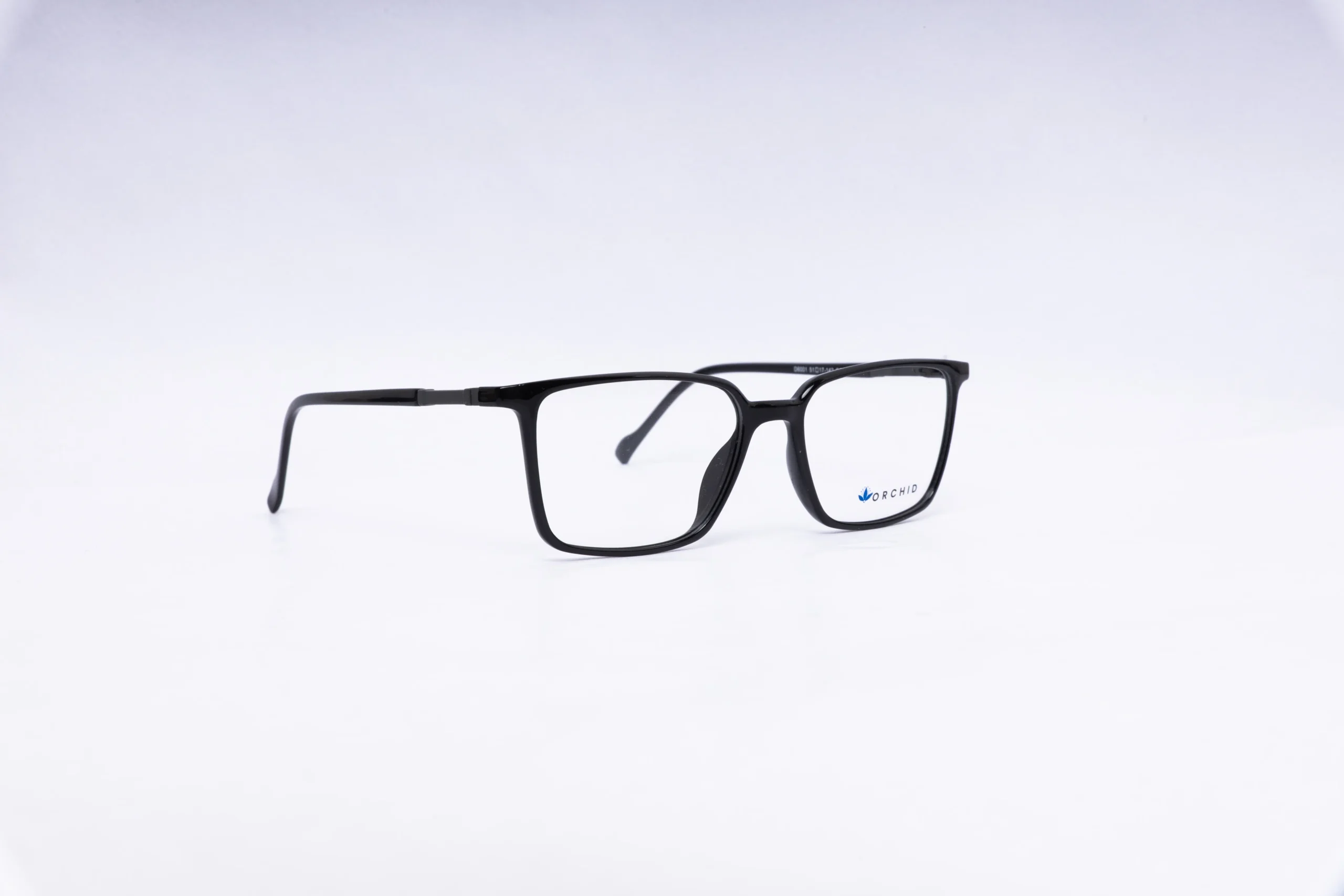 Premium rectangular eyeglasses from ORCHID in a stunning black finish. These frames combine style, comfort, and quality craftsmanship.